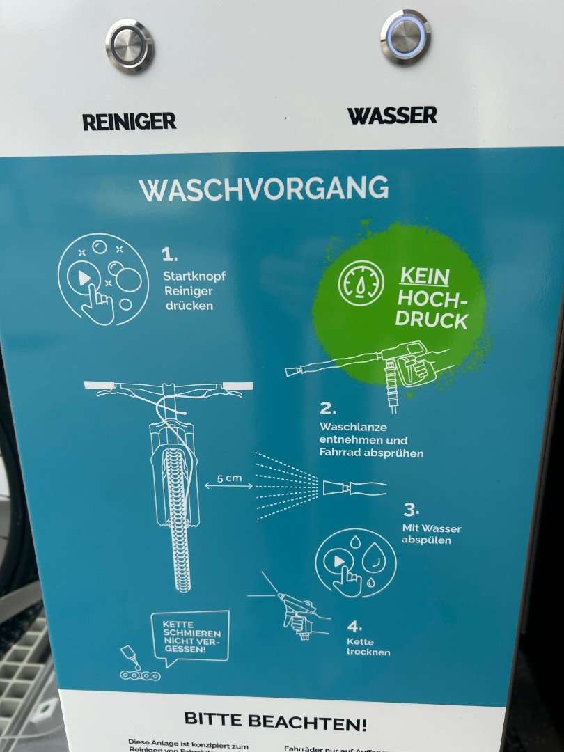 Bikegroovy mit 25 Jahren Erfahrung haben die Fahrradreinigung auf ein neues Level gehoben. Mit Niederdruck, Heisswasser, und einen speziellen Reiniger könnt Ihr hier euer Rad wieder auf Hochglanz bringen.