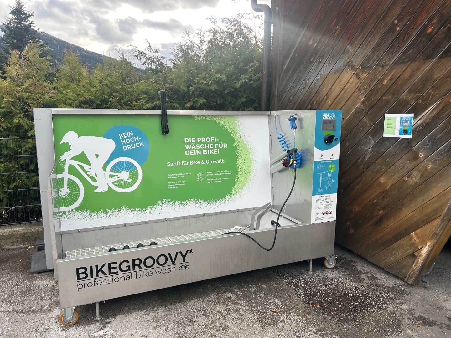 Direkt bei uns am Parkplatz befindet sich unsere Waschanlage von Bikegroovy.