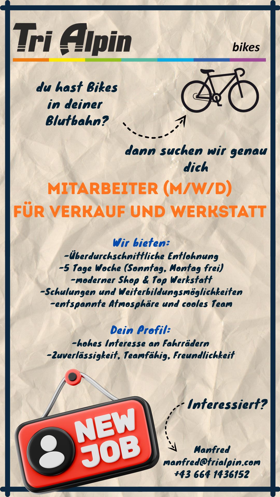BORN TO RADLDu hast Lust auf Veränderung, willst mal was neues Probieren? Na dann komm gerne vorbei und lass uns darüber reden. Natürlich auch gerne den traditionellen Weg mit email oder Telefon :)